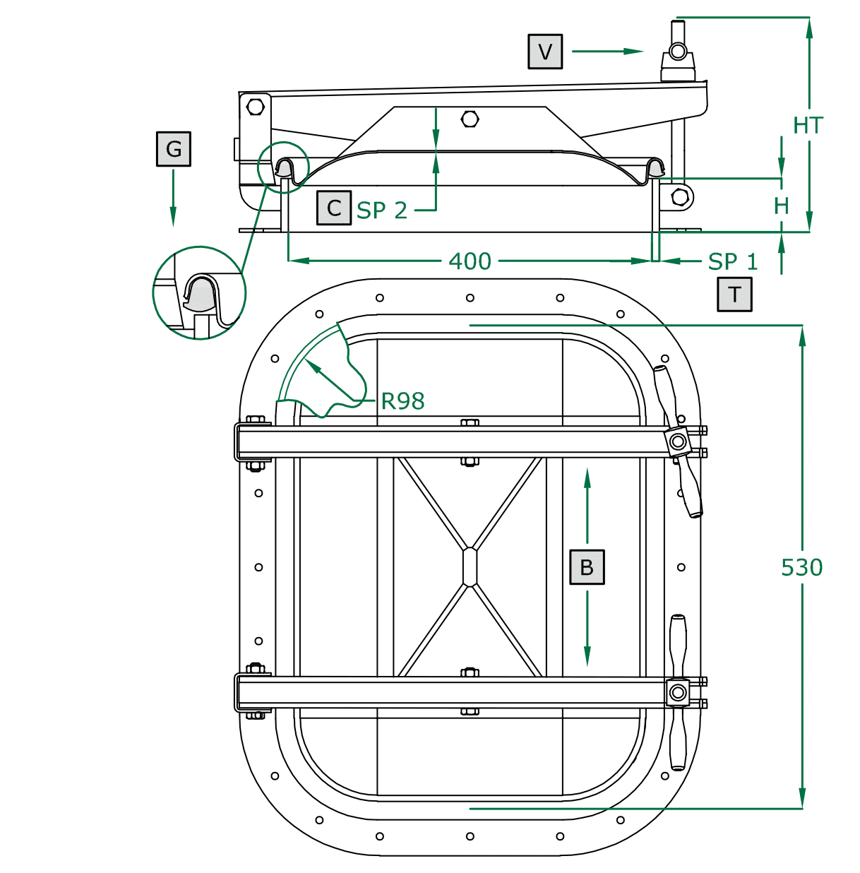 Rechteckige Mannlochtür Öffnung nach außen