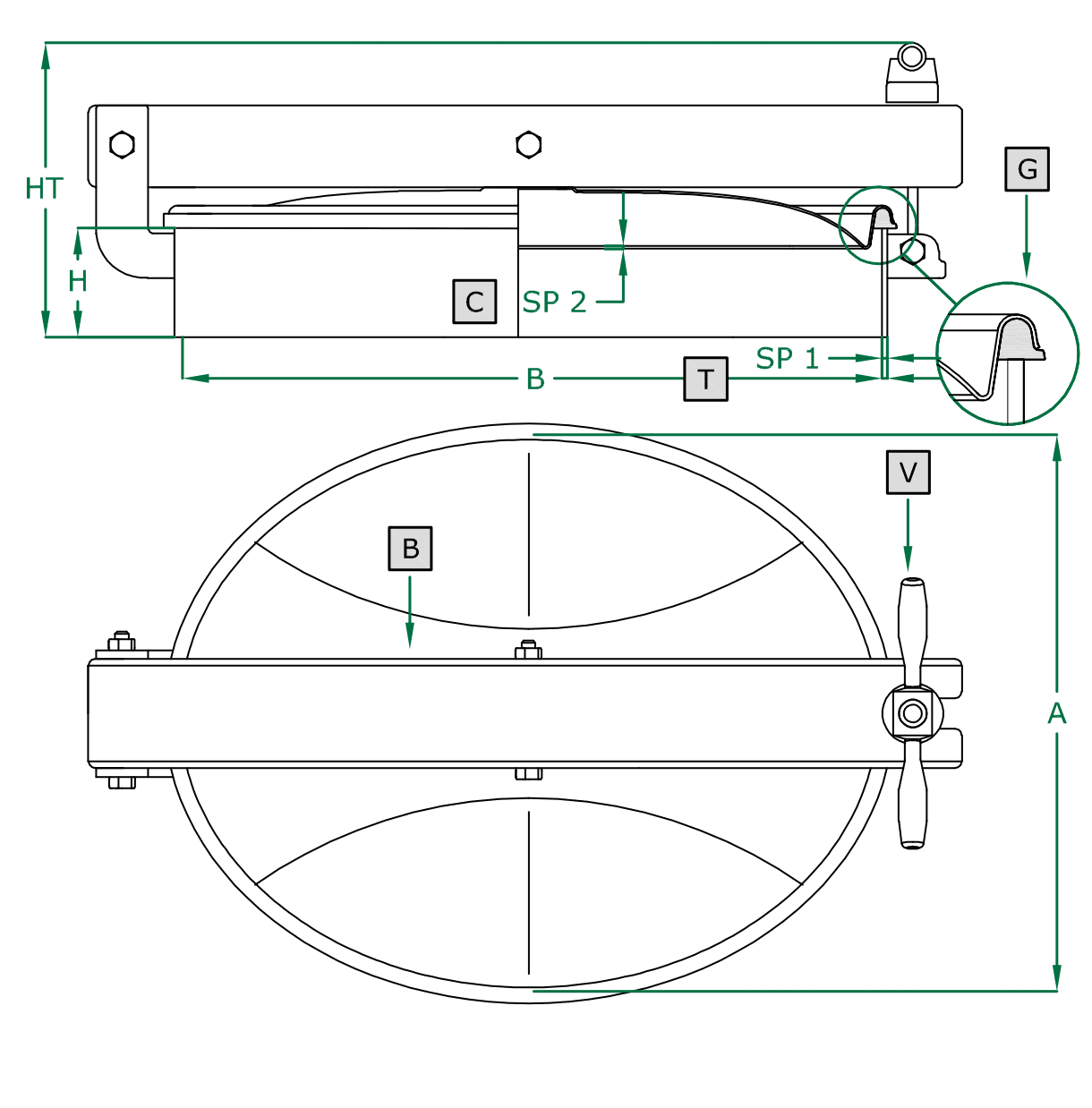 Puerta oval apertura externa