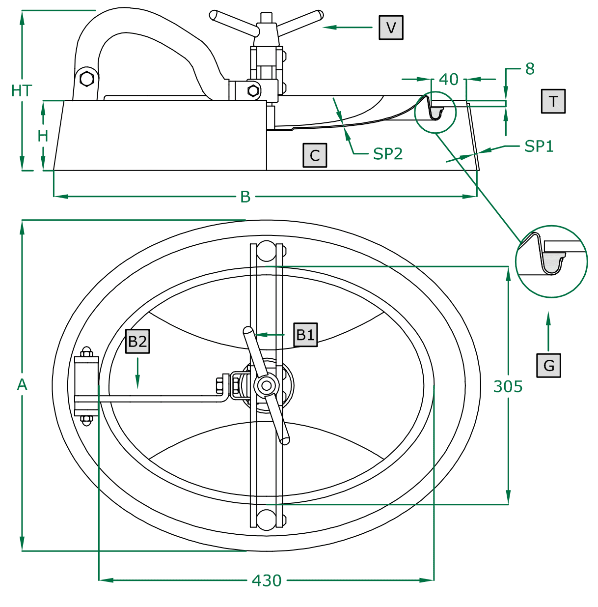 Portella ovale apertura interna