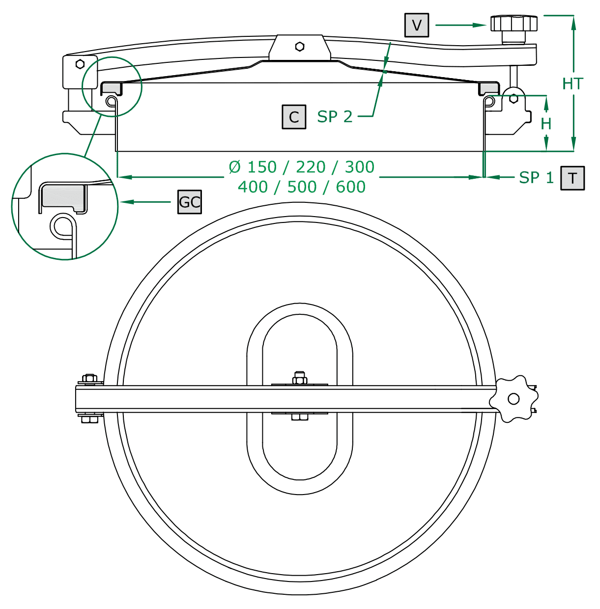 Chiusino circolare antiristagno apertura a ribaltamento e bandiera