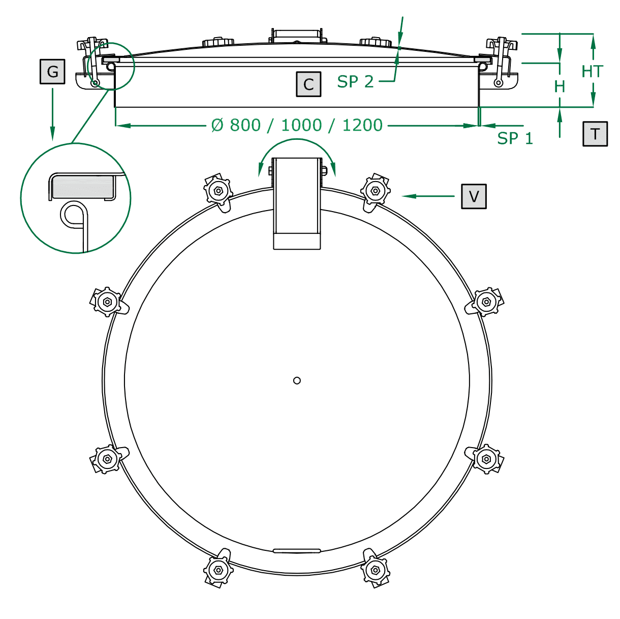 Антизастойная крышка круглого люка с откидным и поворотно-боковым открытием