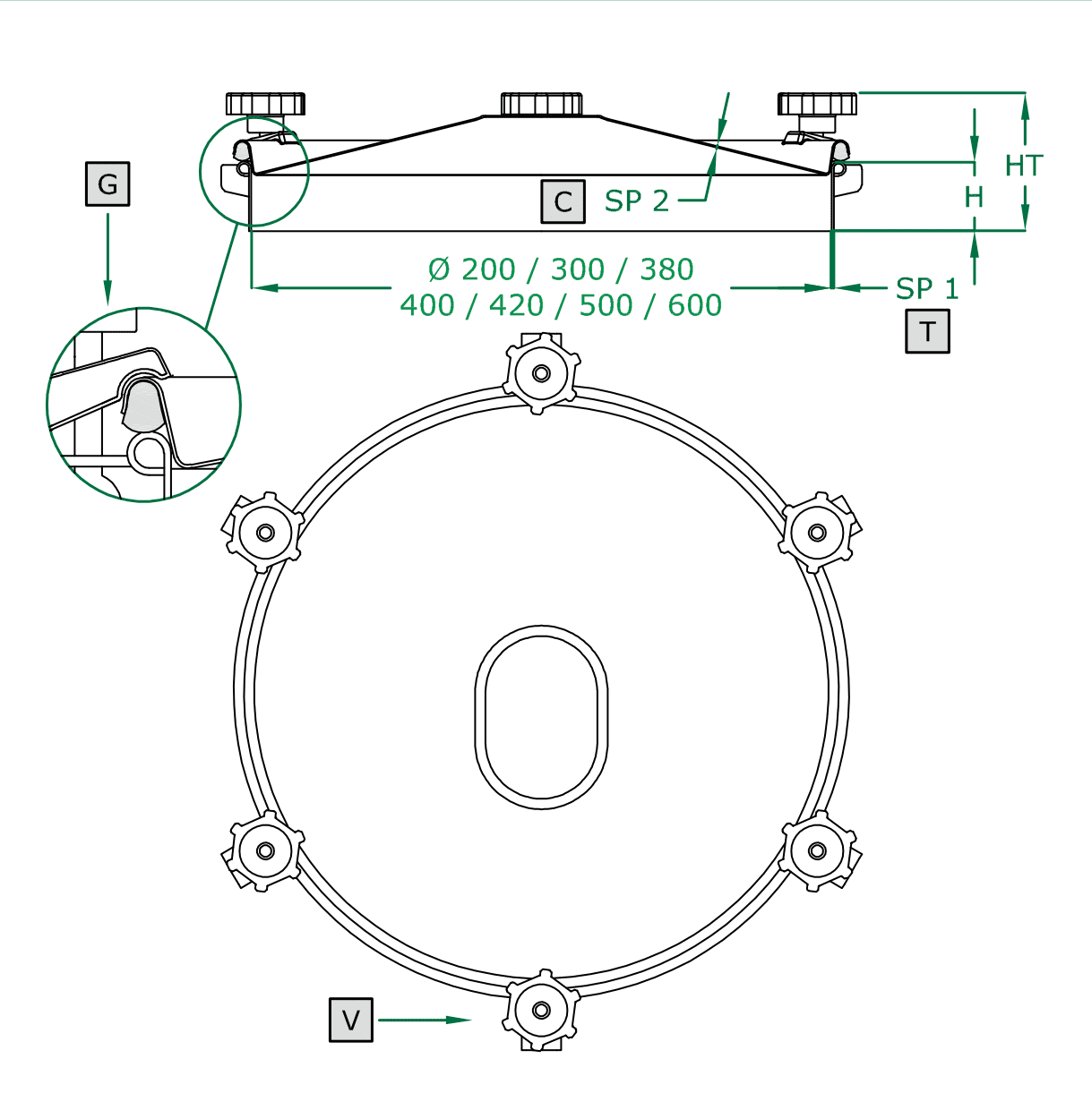 DN200 | 300 | 380 | 400 | 420 | 500 | 600 mm