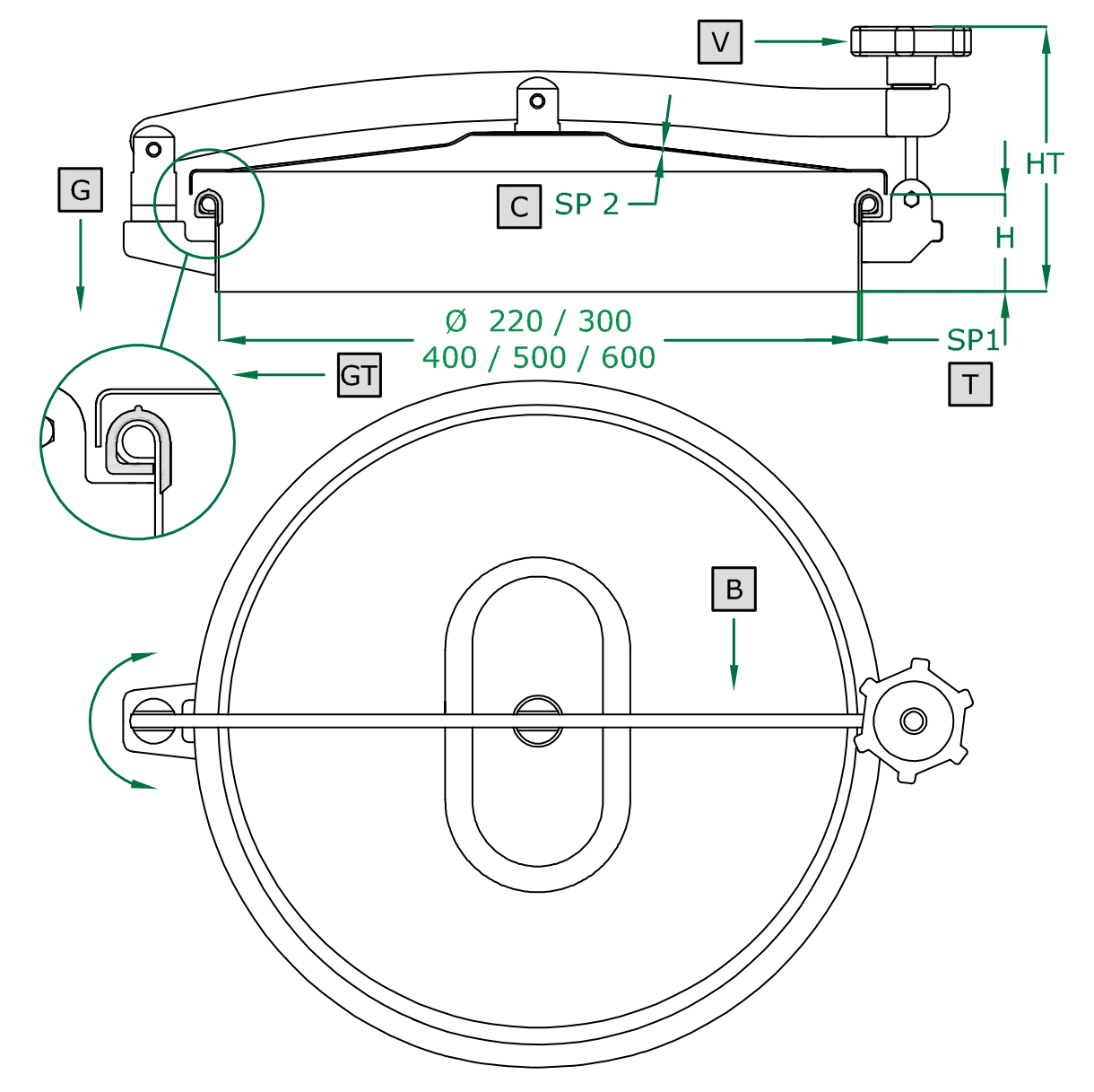 Антизастойная крышка круглого люка с откидным и поворотно-боковым открытием
