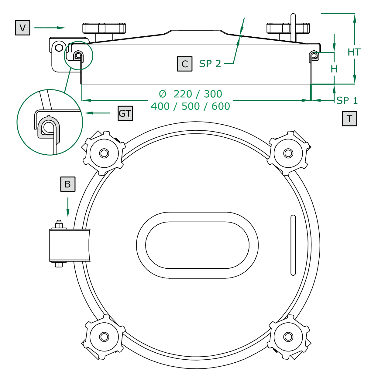 Антизастойная крышка круглого люка с откидным и поворотно-боковым открытием