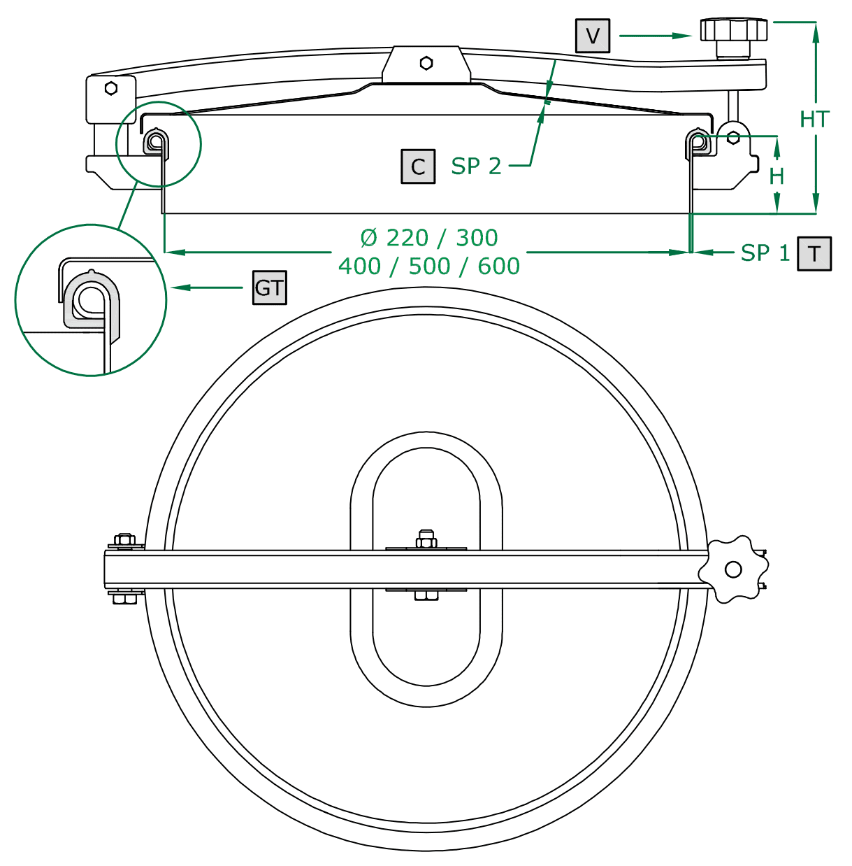 Антизастойная крышка круглого люка с откидным и поворотно-боковым открытием