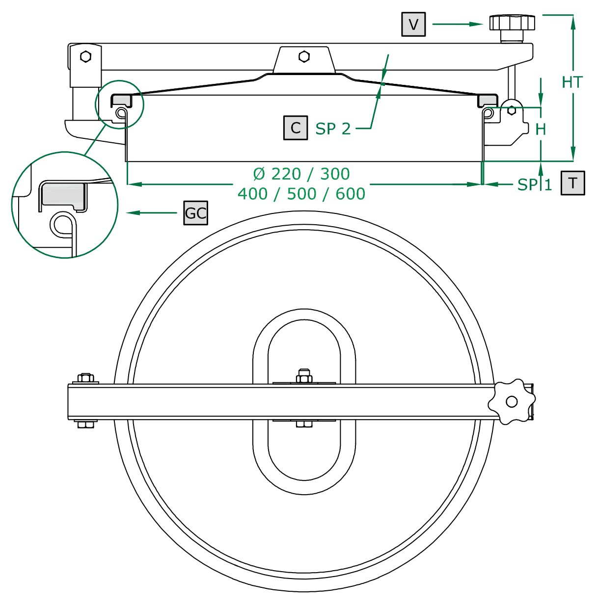 Антизастойная крышка круглого люка с откидным и поворотно-боковым открытием